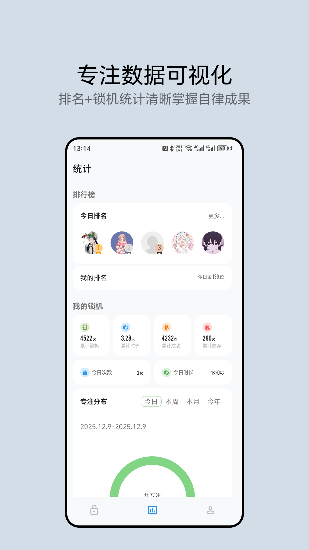 一键锁定手机核心娱乐功能,屏蔽视频、游戏等诱惑,备考刷题、职场攻坚时不分心,杜绝拖延。